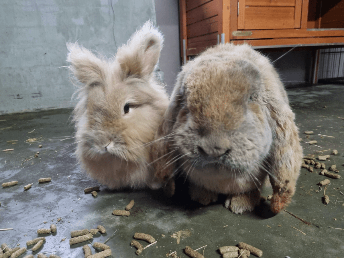 Dit zijn Kippie en Kango, een ontzettend lief en klef konijnenkoppel dat graag samen een fijn thuis zoekt.